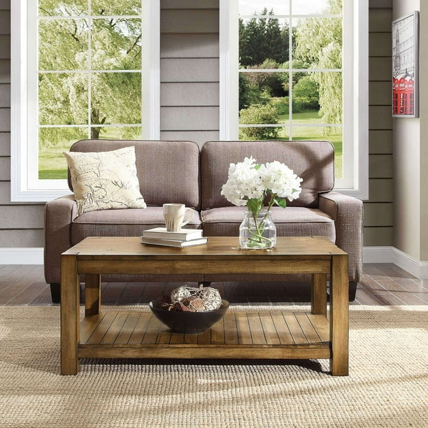 Better Homes Gardens Bryant Solid Wood Coffee Table Rustic Maple Brown Finish Walmart Com